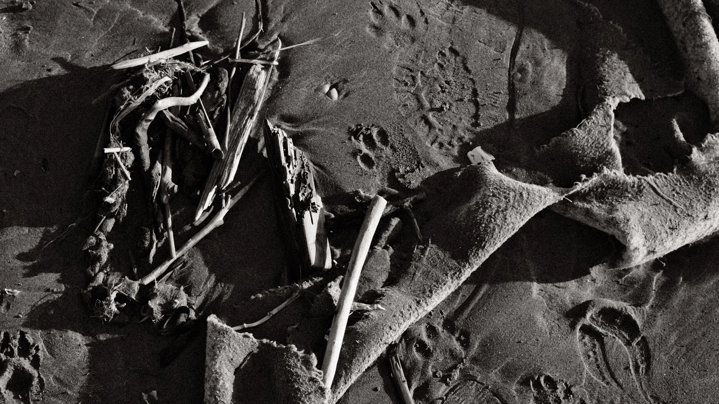 I walk on wet sand. Every step is a measurement. Every grain knows it’s being observed and decides what it wants to be. The sea has returned its leftovers: smoothed driftwood, frayed ropes, anonymous bones of objects that lived somewhere else first. Debris like thoughts during meditation—they show up uninvited. Zen says don’t attach. The sea says you already did.